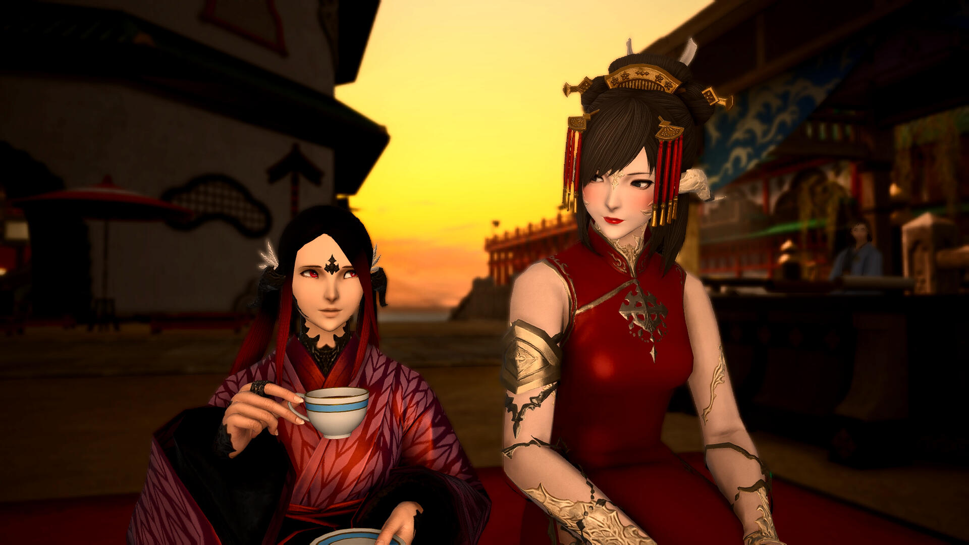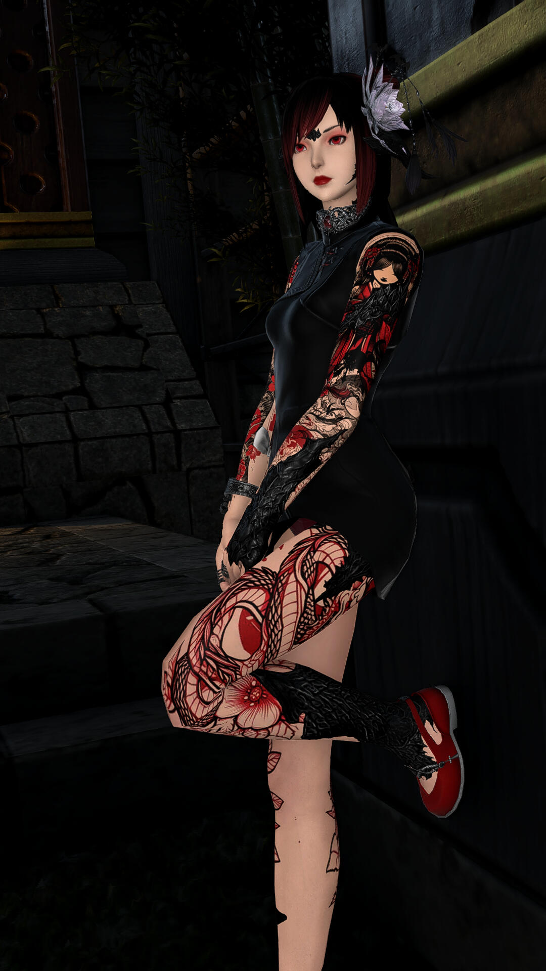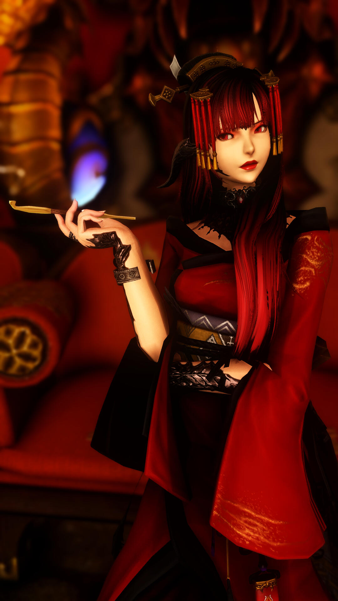 I may bear the black scales of the xaela, but the blood of the children of both Azim and Nhaama flows in my veins. The union of my raen mother Kaede Naraku and xaela mother-sire Orphei Bloodhawk was not one of born of love, commitment, or even lust, but the crazed barbarity of a steppe warrior who takes what they want.I was thus raised by my raen mother in Kugane. She ran a yakuza brothel, whose enterprise rewarded criminal deals at her estate with the pleasures of her house.