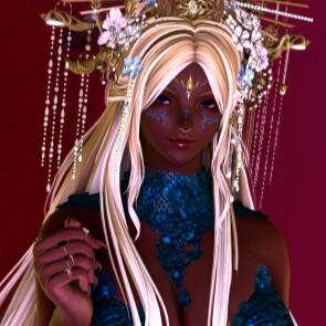 Elrena, the Blue MaidenMy most prized possession. Though our dolls are beneath human to me, this rava is a constant reminder that a doll can rise above their circumstances and embrace elegance.Once a poor, aimless transient, I have molded this doll into the Oiran. I am fiercely protective of her, and she wields an undying loyalty to me and my House.
